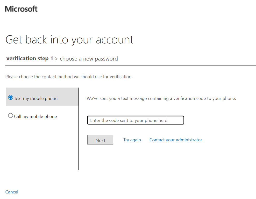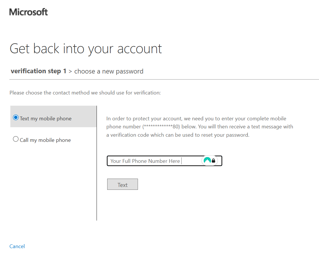 3. Enter the phone number you used for 2-factor Authentication, then click "Text" (or "Call" if you chose "Call my mobile phone")